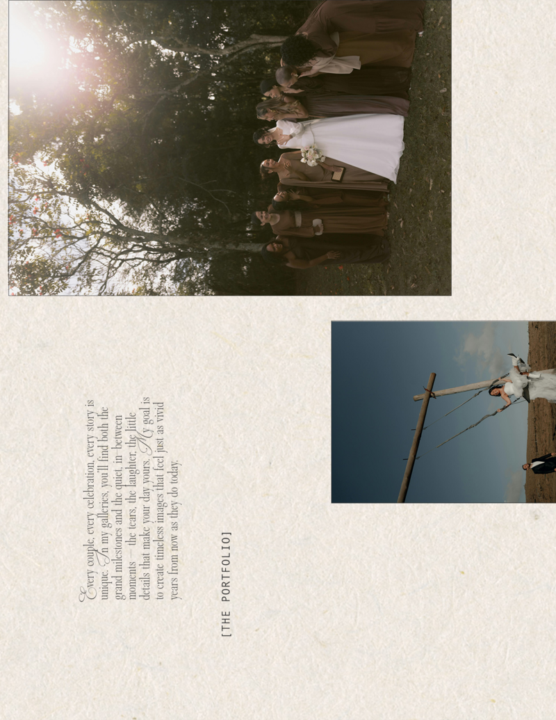 For their studio, I designed and built a brand that reflect that same sense of honesty and romance — warm, inviting, and personal. Alongside their visual identity, I crafted supporting brand collateral to ensure every touchpoint of their client journey carries the same consistency, elegance, and soul.